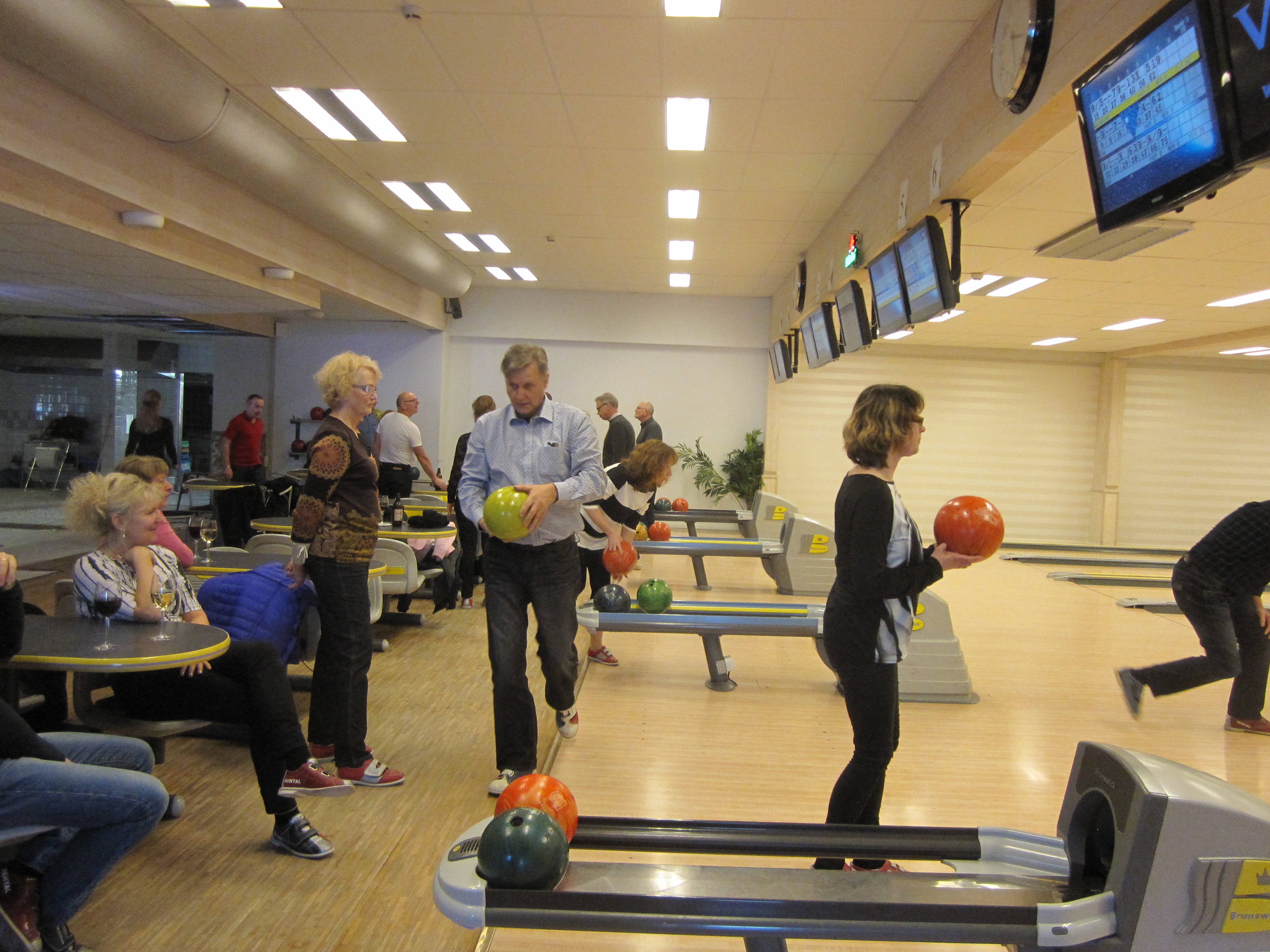 Efter samling med incheckning var det dags för den stora bowlingtävlingen. Det kämpades friskt och med stor entusiasm men banorna måste ha fått någon form av slagsida för många, många klot hamnade i den s.k. rännan.