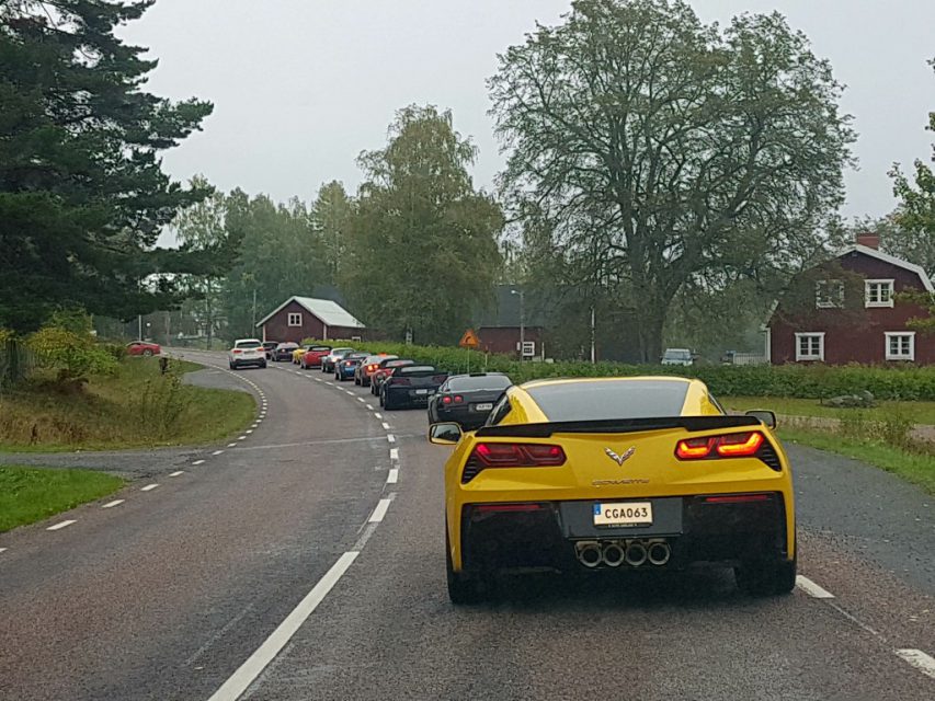 Den här gråmulna dagen var vi 18 Corvetter och en följebil som samlades för att åka en sväng.