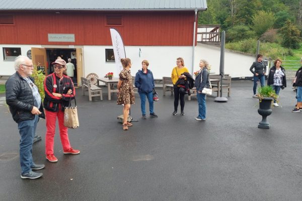 Söndagsträff som lockade 10 bilar med passagerare , via småvägar tog vi oss till Karlfors mellan Lerdala och Timmersdala där vi mottogs med öppna armar av gårdsfrun Josefina. Hon berättade lite historik runt gården och bjöd oss in för att se hennes butik samt att smaka på fika.