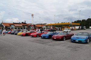 Rasta i Götene var samlingsplatsen för dagens tur. 10 bilar och 16 pers tyckte det skulle bli roligt att vädra bilarna och sig själva.
