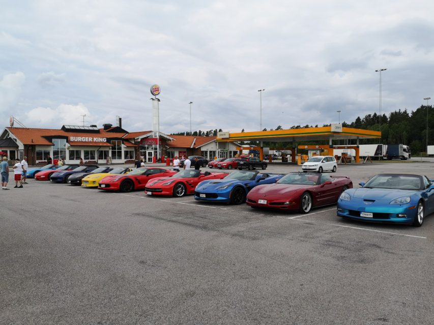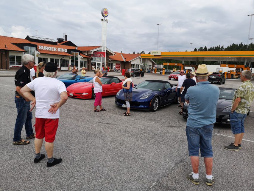 Rasta i Götene var samlingsplatsen för dagens tur. 10 bilar och 16 pers tyckte det skulle bli roligt att vädra bilarna och sig själva.
