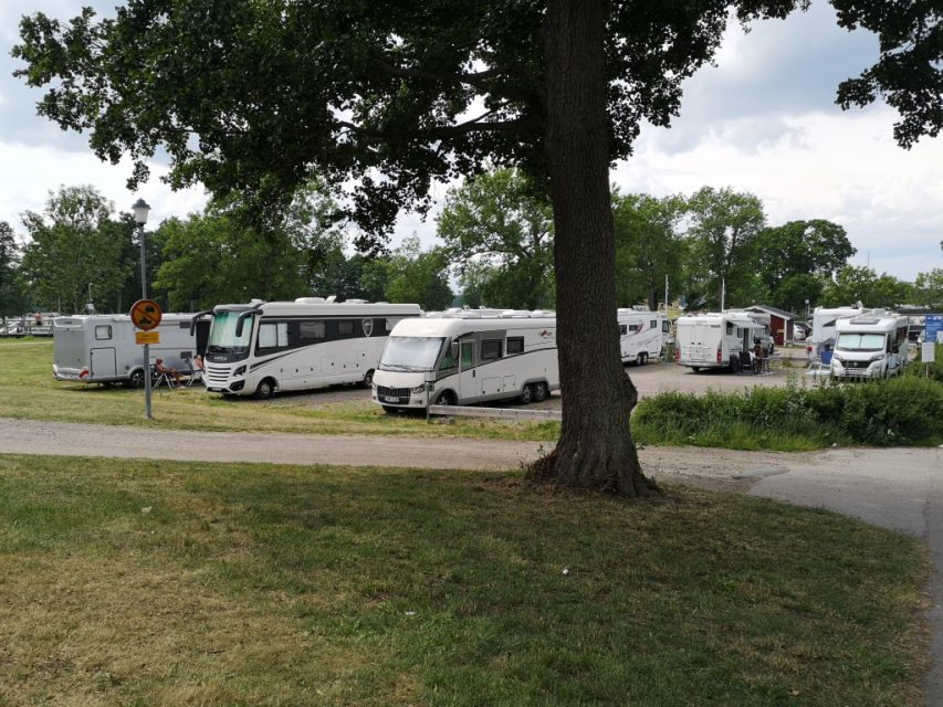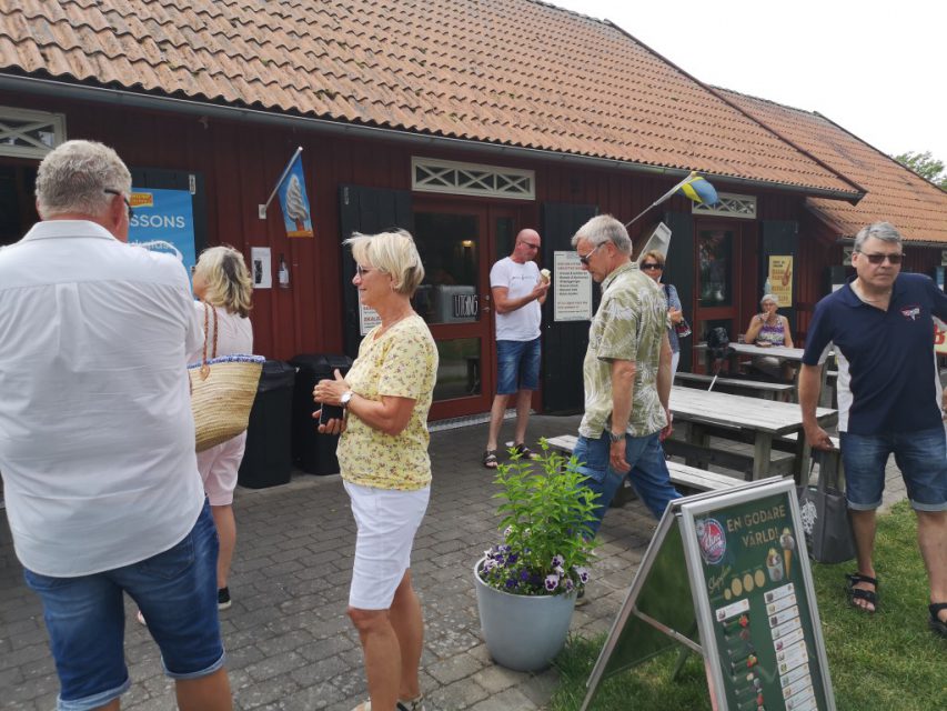Resan gick över Kinnekulle vidare till Mariestad och Sjötorp där det var glasstopp. Oj vad mycket folk som är i rörelse med husvagnar och husbilar, ibland svårt med parkering för våra bilar.