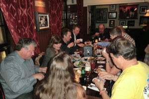 Ett 25-tal medlemmar hade hörsammat kallelsen till årets middag på Hard Rock Café. Tidigare på dagen var det GoKart, undertecknad kunde dock inte närvara p.g.a. att det stod hushållsnära tjänster på schemat. Samling i baren från kl. 18.30 i väntan på middagen kl. 20. Vi hade beställt mat i förväg från en gruppmeny med bl.a. hamburgare, ceasarsallad och revbensspjäll.