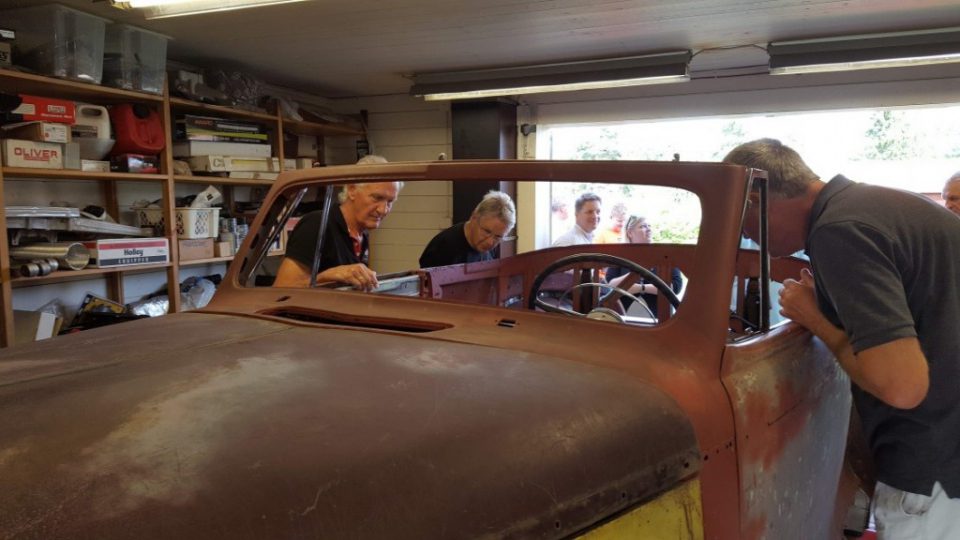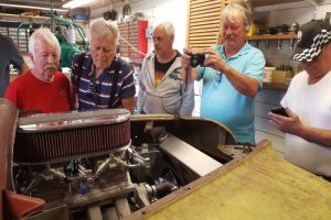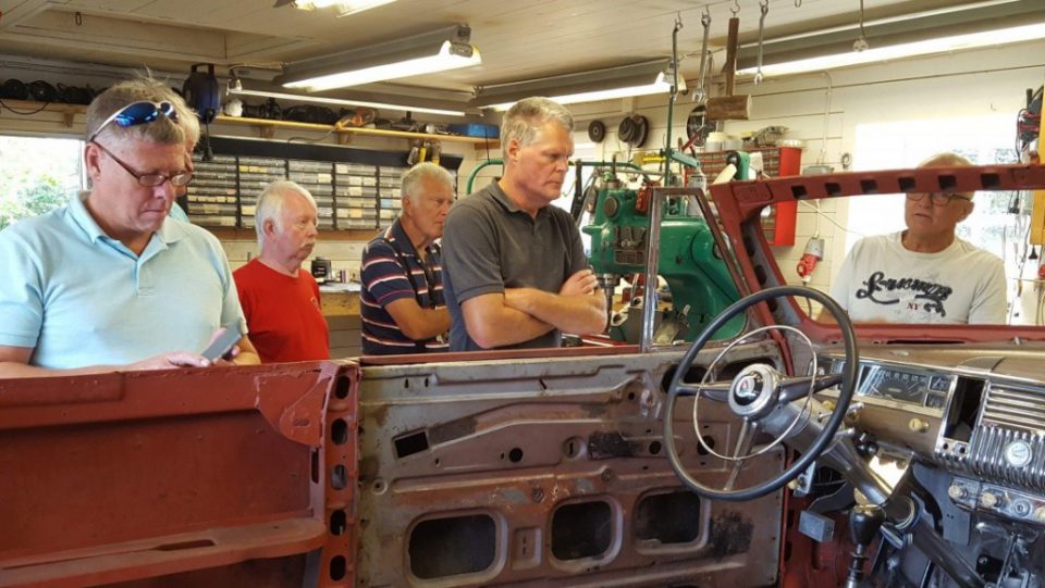 Vi hälsades välkomna av vår värd Leif, som visade oss runt i garaget och berättade med stor inlevelse, den fantastiska historien bakom bygget, samt hans sökande och släpande på grejer från Amerika.
