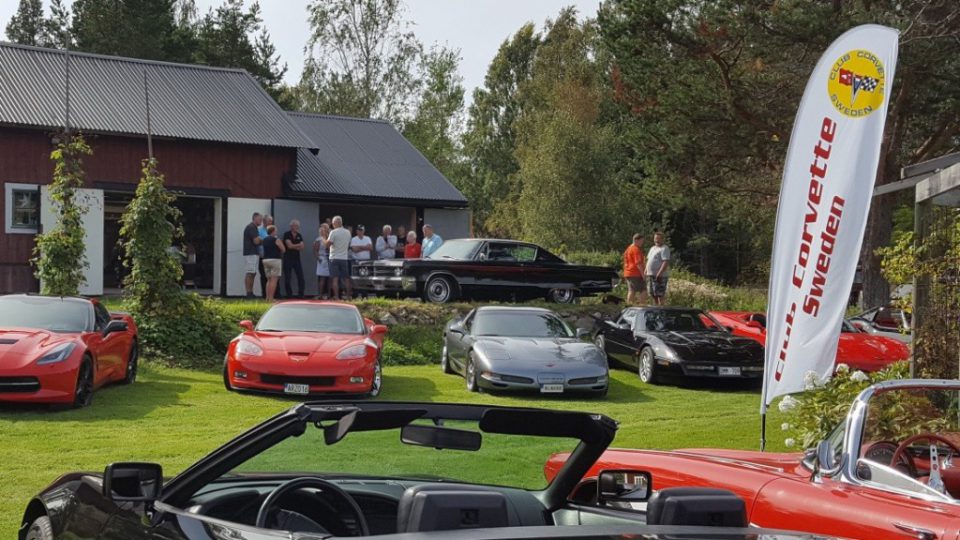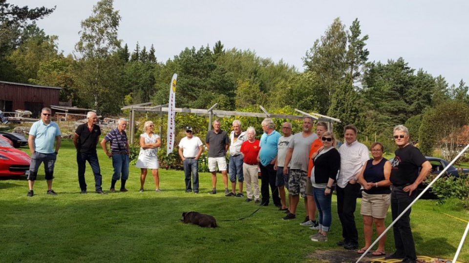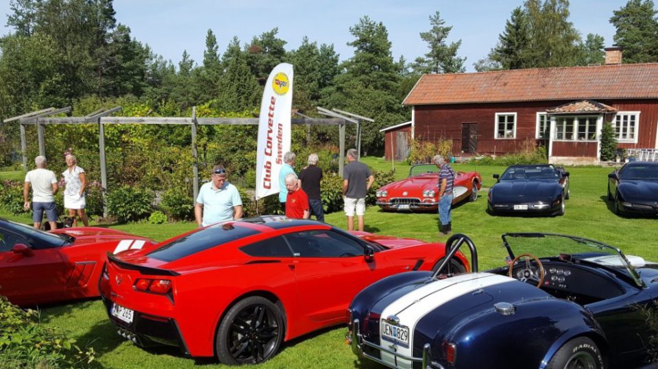 Corvetterna ställdes upp i den stora trädgården. Det visade sig att vi nästan var samtliga ”generationer” av Corvetter samlade. Det var bara C2;an som inte var där. En AC COBRA fick ta dess plats. Efter att Clubflaggan återigen var uppsatt, så meddelade en lustigkurre att; ”Nu kan ni fotografera så vi kan åka hem sen”.