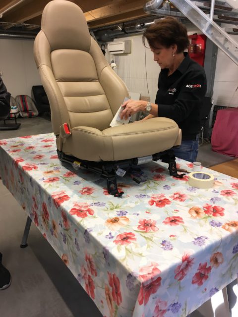 Det har sällan varit så tyst när 16 CCS medlemmar samlats på en och samma plats som när Malin visade hur det går till att laga en skada på en Corvette stol, man kunde sannerligen höra en knappnål falla, det gick inte att ta miste på intresset och hur kanske tankarna for iväg på hur detta kan fixa min stol. Nu är detta jobb lite av en målares vardag, torktider, vilket gjorde att vi inte fick se från början till slutprodukten, men det finns bilder före och efter och jag kan då inte se skadan när stolen är klar, resultatet är helt fantastiskt