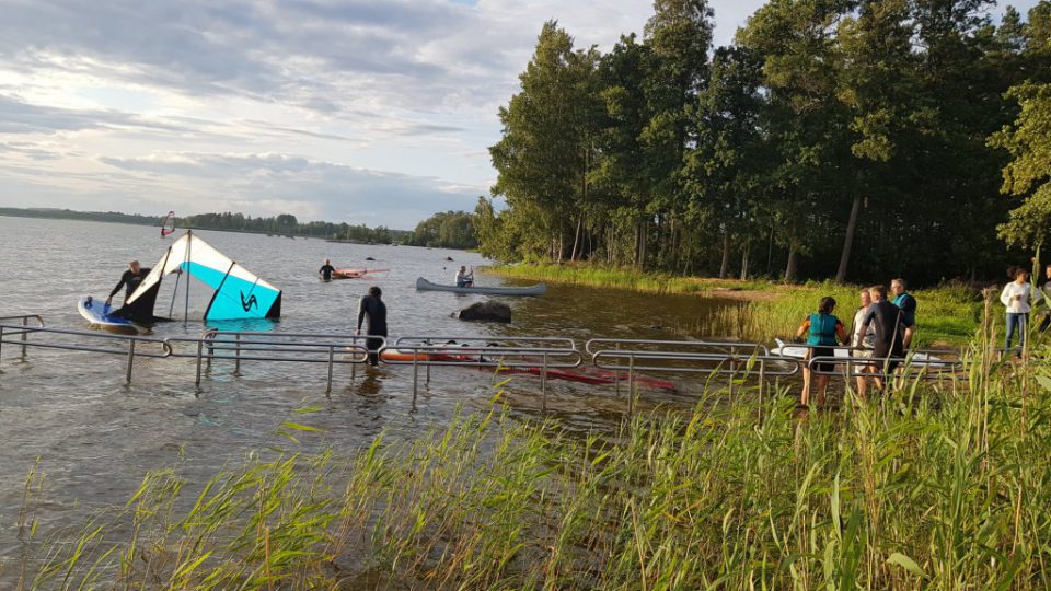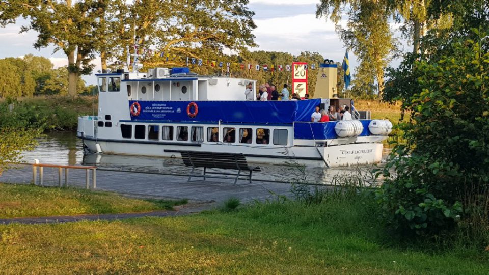 När vi kom ut mätta och belåtna var det lite blött på marken men solen var redan framme och torkade upp. Strax utanför den naturfina udden höll ett par vindsurfare på att segla och passagerarbåten Gustaf Lagerbjälke passerade strax utanför med glada människor ombord på väg ut till mellanfjärden.