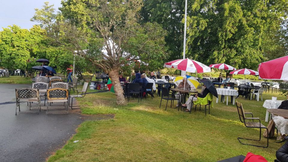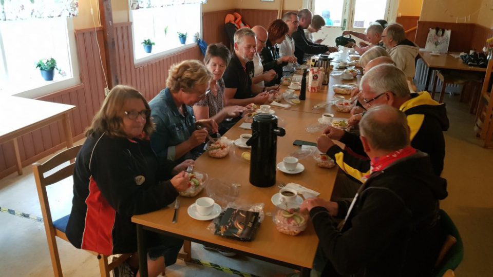 Efter lite mingel i parken vid bilarna gick vi in i deras nyrustade Annex där vi förväntansfullt skull äta deras goda Räksmörgåsar. Vi blev mycket bra uppassade av den duktiga personalen som ordnade allt så trevligt för oss.