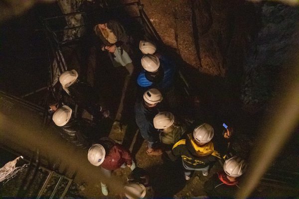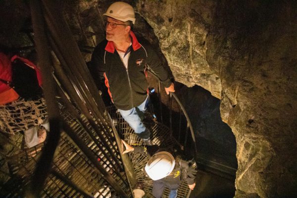 Att gå ner 60 meter under mark denna varma dag kändes lite som en befrielse, det är ca 5 grader där ner, så tröjor och jackor togs på.