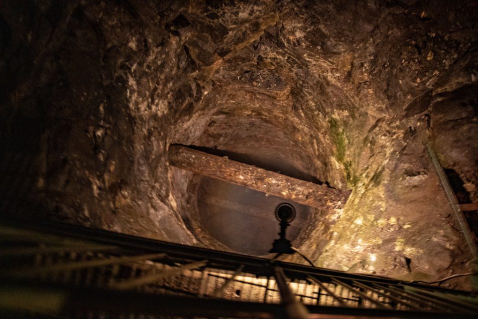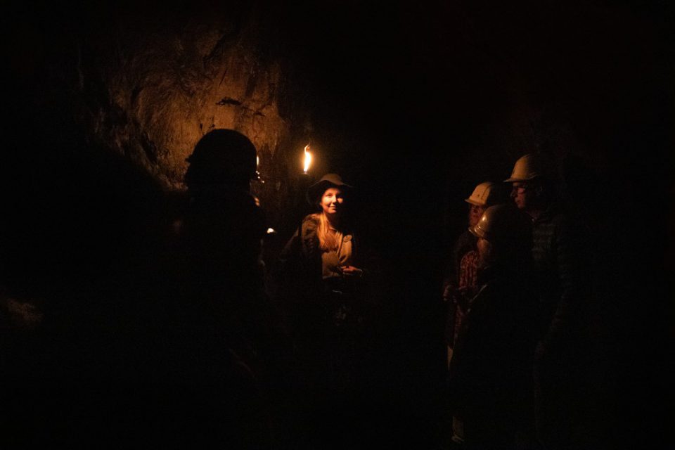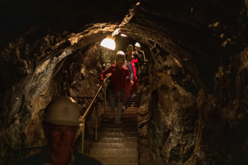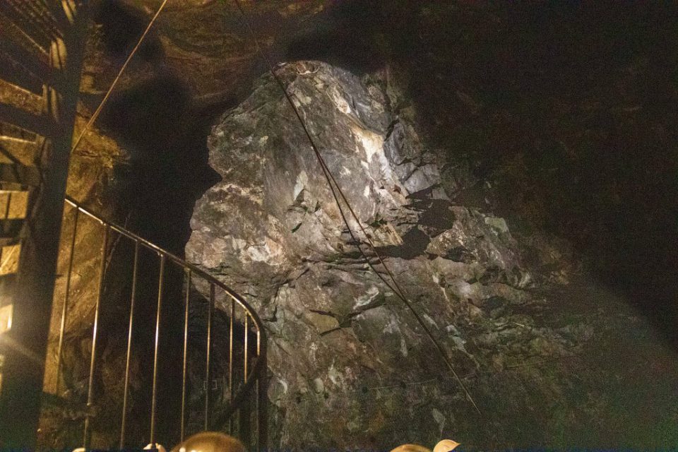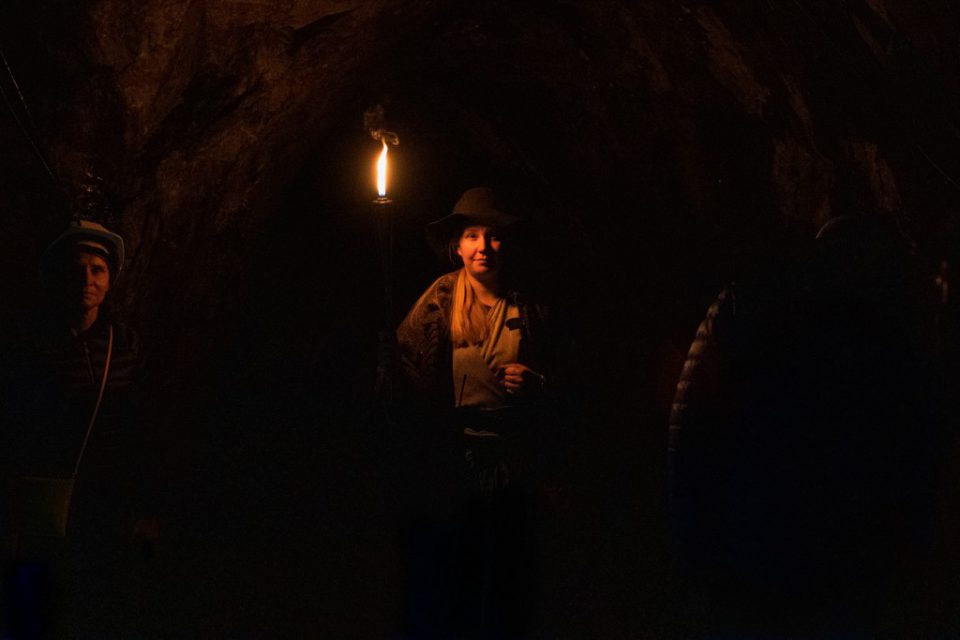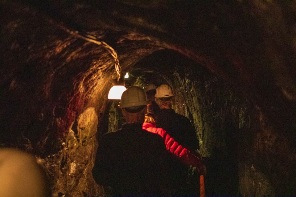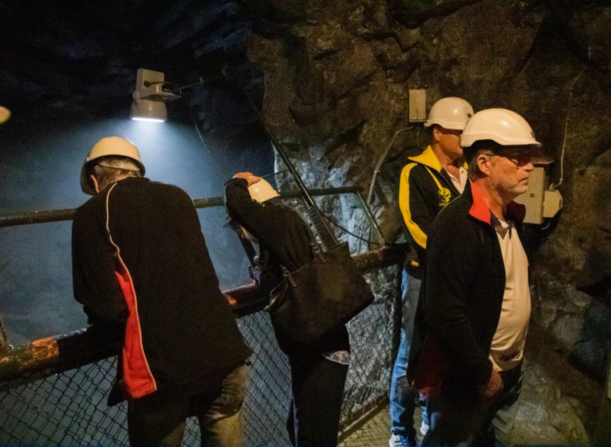 Att gå ner 60 meter under mark denna varma dag kändes lite som en befrielse, det är ca 5 grader där ner, så tröjor och jackor togs på.