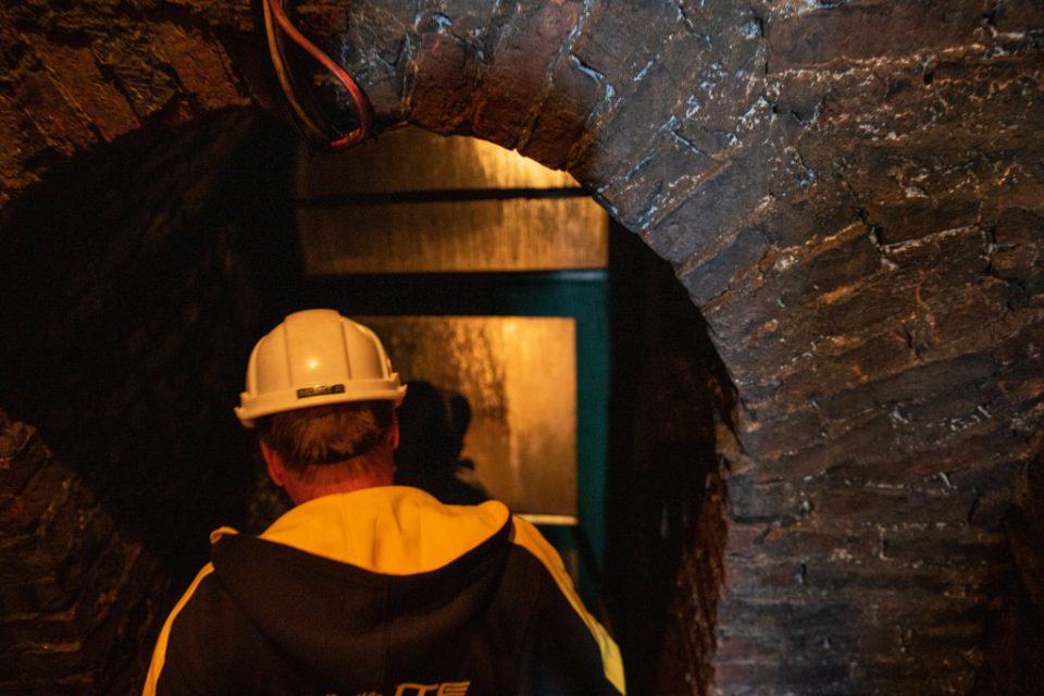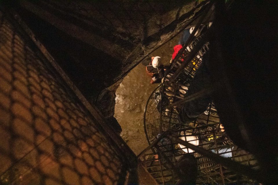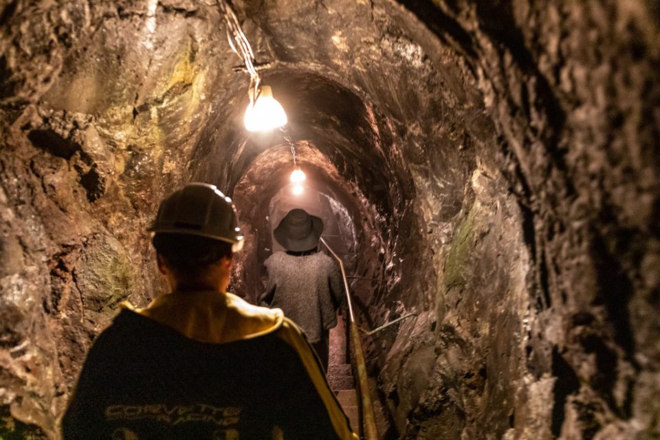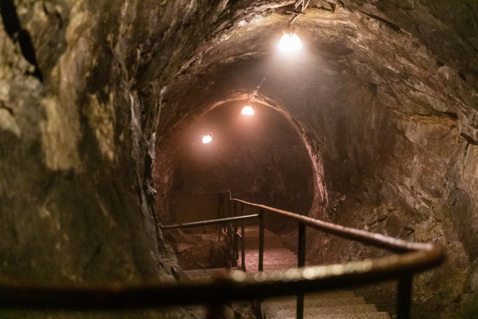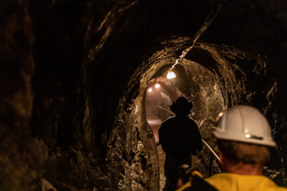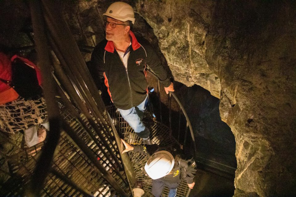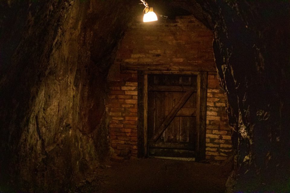 Att gå ner 60 meter under mark denna varma dag kändes lite som en befrielse, det är ca 5 grader där ner, så tröjor och jackor togs på.