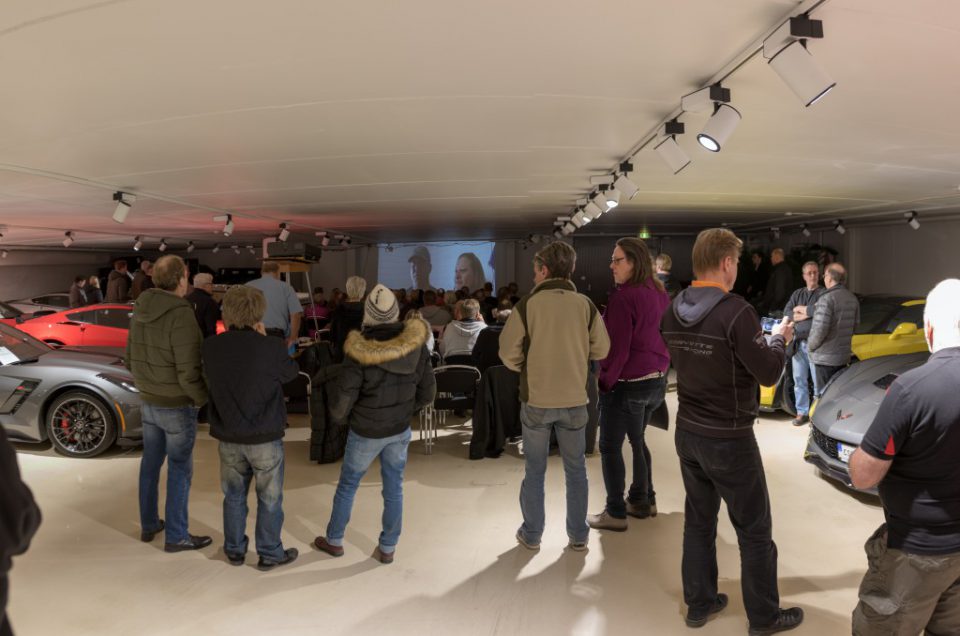 Den 25 februari var det dags för årets filmvisning. Denna gång var vi hos vår samarbetspartner Callisma i Danderyd. Från halv tre så började det strömma in folk och vi blev nog uppåt 150 personer totalt. Riktigt kul att åter se och mingla med sina Corvettekamrater. Callisma hade ett flertal bilar med för dagen nedsatta priser till salu och nog var vi många som suktade. De hade tagit in en cateringfirma som serverade rejält med snacks och dricka innan det bjöds på pulled pork hamburgare. Riktigt gott och några tog backning. Sen var det dags för visning av film. Förra årets sommarmöte i Tanumstrand samt Nationaldagen på Tidö slott. Eftersom lokalen inte hade biografhöjd blev det lite knepigt att se nederdelen av duken för oss som satt lite längre bak men jag kunde ändå se mig själv några gånger. Tack till Callisma samt Örnen och Pilen för att ni ordnade detta trevliga arrangemang.