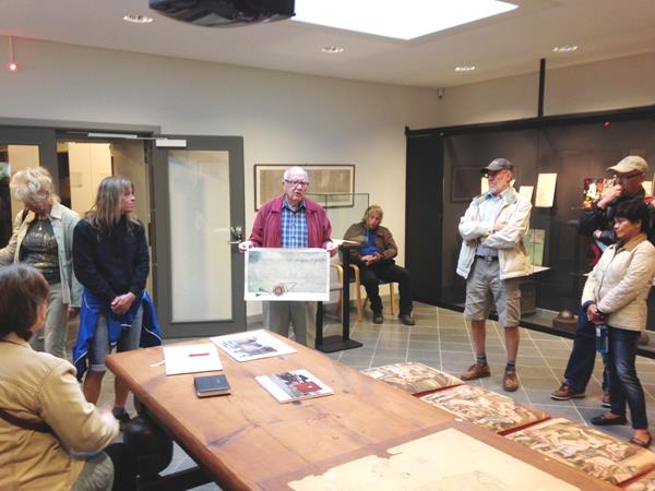 Efter en intressant introduktion utomhus av Åkers styckebruks allvetare Evert från Hembygdsföreningen delades de 56 deltagarna in i två grupper. Den ena gruppen fick gå till bruksmuséet med Sten, en annan allvetare, och den andra till bruksarkivet som är inrymt i en ombyggd masugn från 1795. Delar av masugnen kunde ses genom en tjock glasskiva i golvet. Efter cirka 1 timmes föreläsning i bruksarkivet av Evert om brukets och även Sveriges historia och med många livfulla anekdoter och visning av brukets skrifter och kartor bytte grupperna plats. Det blev därefter cirka 1 timmes visning med Sten som ciceron av bruksmuséet med åkerstillverkade kanoner, kanonkulor, Åkers patentplog m.m. samt den fina mineralsamlingen från järnmalmsleverantörerna Skottvångs gruvor och Utö gruva.