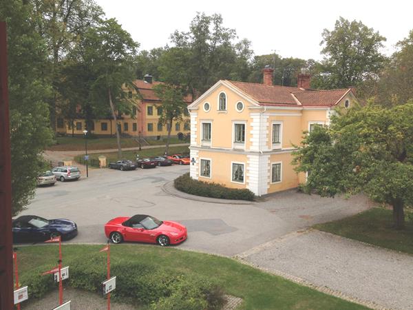 Totalt kom 30 st Corvetter till start i Botkyrka på Shell/ Mc Donald´s och efter motorvägskörning förbi Södertälje gick färden vidare på mindre vägar fram till Åkers samhälle, där vi svängde upp och parkerade framför det gamla brukskontoret.