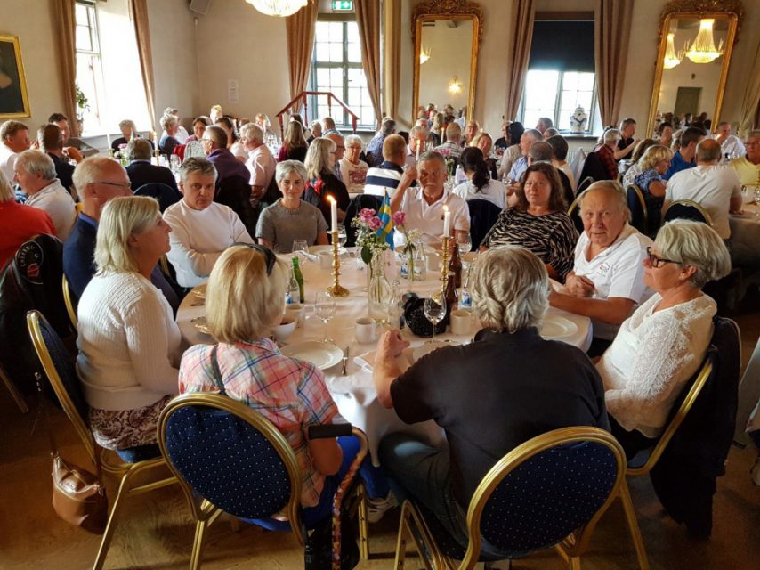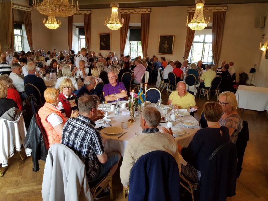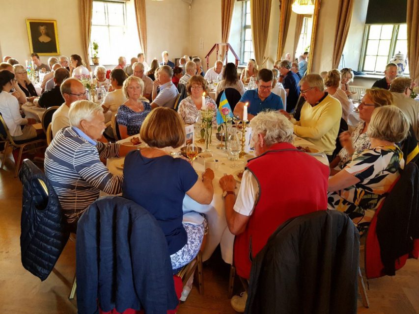 Lunchen bjöd först på en förrätt sedan kom huvudrätten som bestod av Slottsstek samt därefter kaffe med kaka. Slottsfrun gav en liten kort historiebeskrivning om Slottets tidigare ägare och dess förehavanden. Under middagen lottades det även ut närvarovinster till 6 stycken medlemmar.