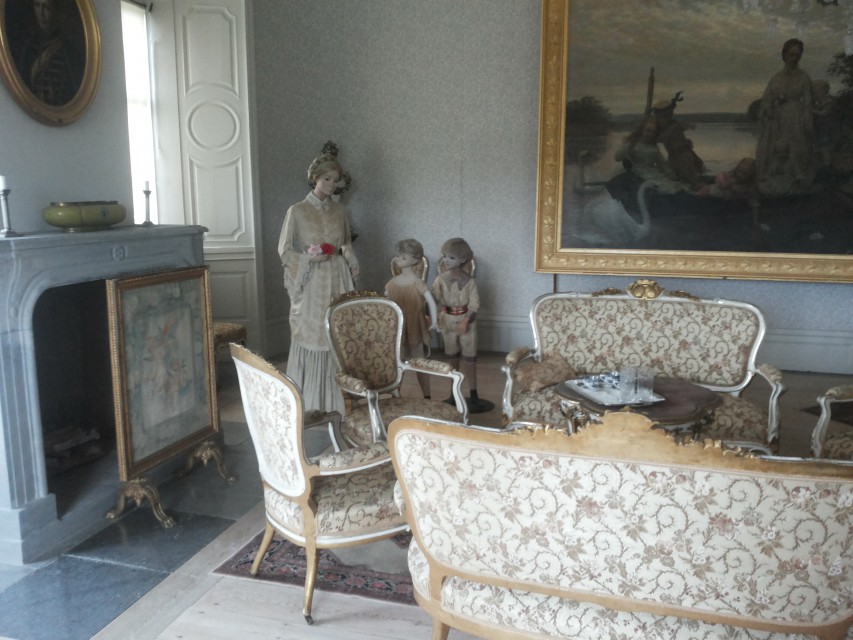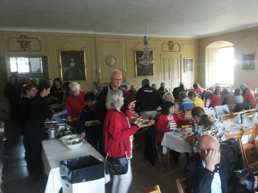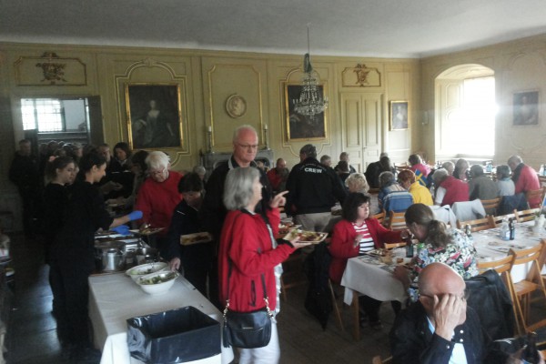 Efter lite mingel bland våra bilar och vandring i slottsparken så bjöds vi in på en 2-rätters nationaldagslunch med kaffe och kaka i stora slottssalen. Efter maten väntade en rundvandring i slottets olika rum som är bevarade med interiörer från 1800-talet. Till vår ”skräckblandade” förtjusning så fanns det spöken som bodde kvar på slottet och som gick runt och spökade för oss.
