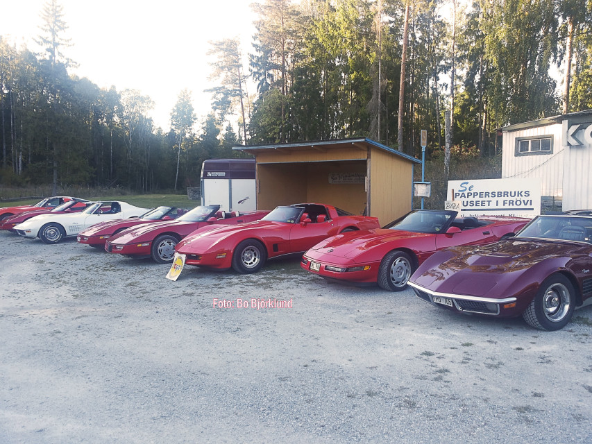 Vi var totalt 9 st Corvetter och 13 personer från Klubben som deltog på utflykten i värmande kvällssol. Vi samlades vid Restaurang RASTA i Arboga för att åka i karavan till Nostalgibyn, luckor och cabbar var nedpackade. Riktigt roligt var att vi hade några långväga medlemmar med på utflykten. Lasse Öhrn kom ända från Bålsta för att delta, mycket strongt gjort. Ytterliga långväga deltagare var Ralf Smeds från Västerås och Lennart och Carita Vindahl samt Sven-åke och Ingrid Hultman från Hallsberg. De övriga deltagarna var från Arboga med omnejd.