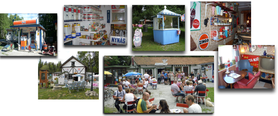 Vid Nostalgibyn hade vi en egen Corvette-parkering inbokad med den ansvarige, dock så hade jag valt en kväll med mindre publik så plats fanns det gott om. Efter lite minglande vid bilarna och utlottning av ett närvaropris som Jan-Olov Frölind vann, så åt vi en god räksmörgås medan guiden berättade lite historia om byn. Vi gick sedan runt och kände in 50- och 60-tals miljön bland alla saker där. Vid åttatiden började de flesta känna sig nöjda och efter lite avrundning började alla sin hemfärd till respektive hemort.