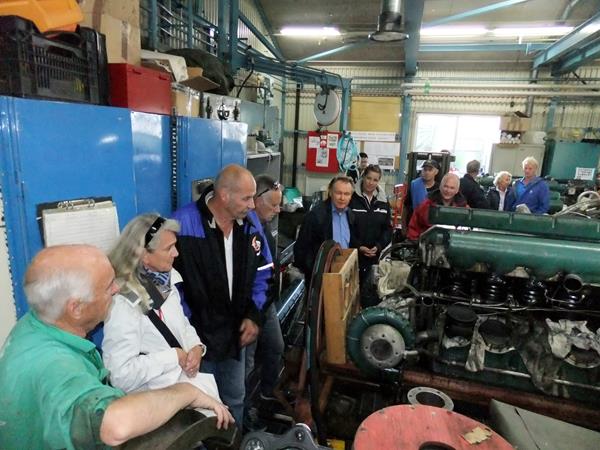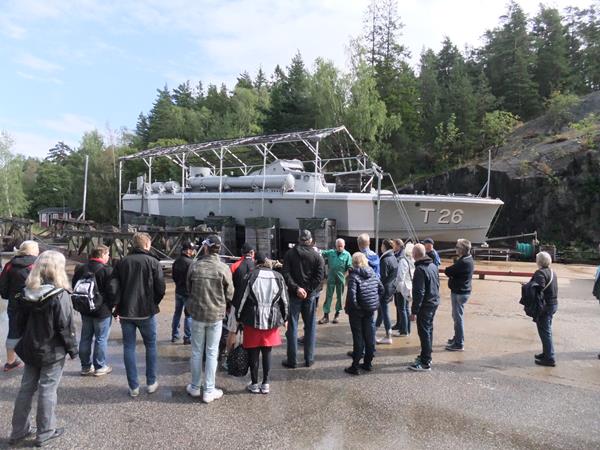 Väl där blev vi insläppta genom den tillfälligt öppnade områdesgrinden och möttes av stiligt uniformerad personal som också hade tjänsgjort som besättning på torpedbåt T121 Spica när hon var i aktiv tjänst. Sedan blev det guidning i verkstaden med motorer under renovering och rundvandring i området med olika andra mindre torpedbåtar både på land och vid kaj.