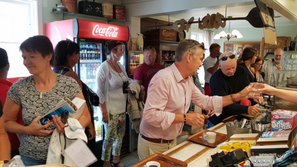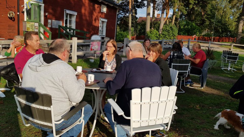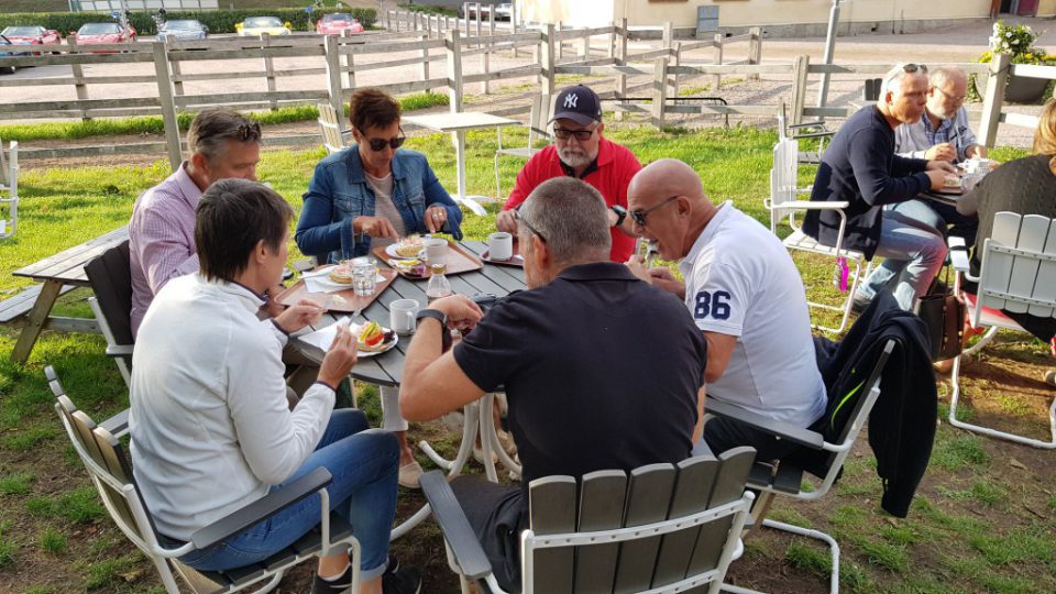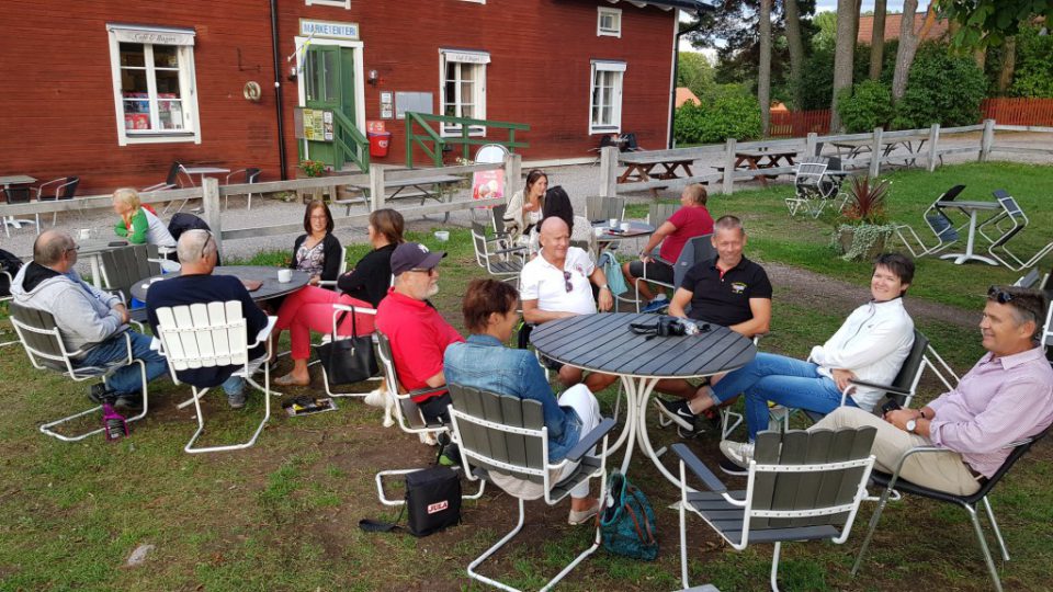 Vi samlades onsdagen den 15/8 vid Rasta E20 utanför Arboga för avfärd mot Strömsholm cafateria ”Markan”. På fina små landsvägar bl.a. genom Herrskogen cruisade vi fram till Strömsholms stora djur- och hästgårdar. Vi rullade in på parkeringen i kvällssolen med våra bilar och efter utlottning av närvaropriser som 5 stycken kunde inhämta så vandrade vi in till Markans dignande montrar med bakverk och smörgåsar. Det var skönt att sitta i deras trädgård och resonera om olika händelser som varit under sommaren och som väntar framöver.