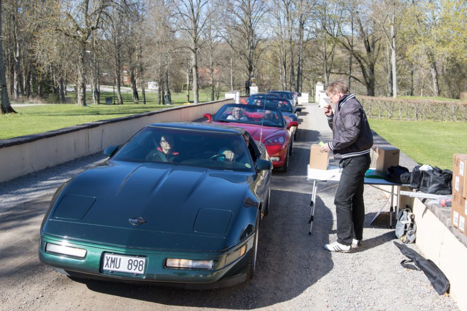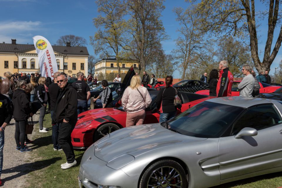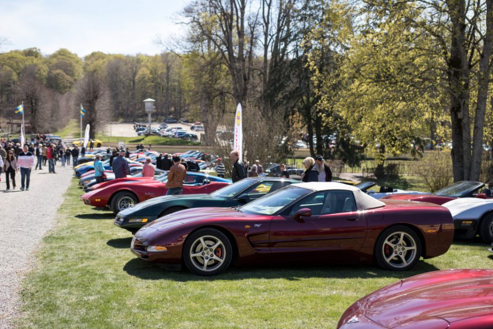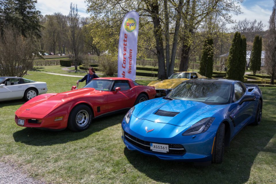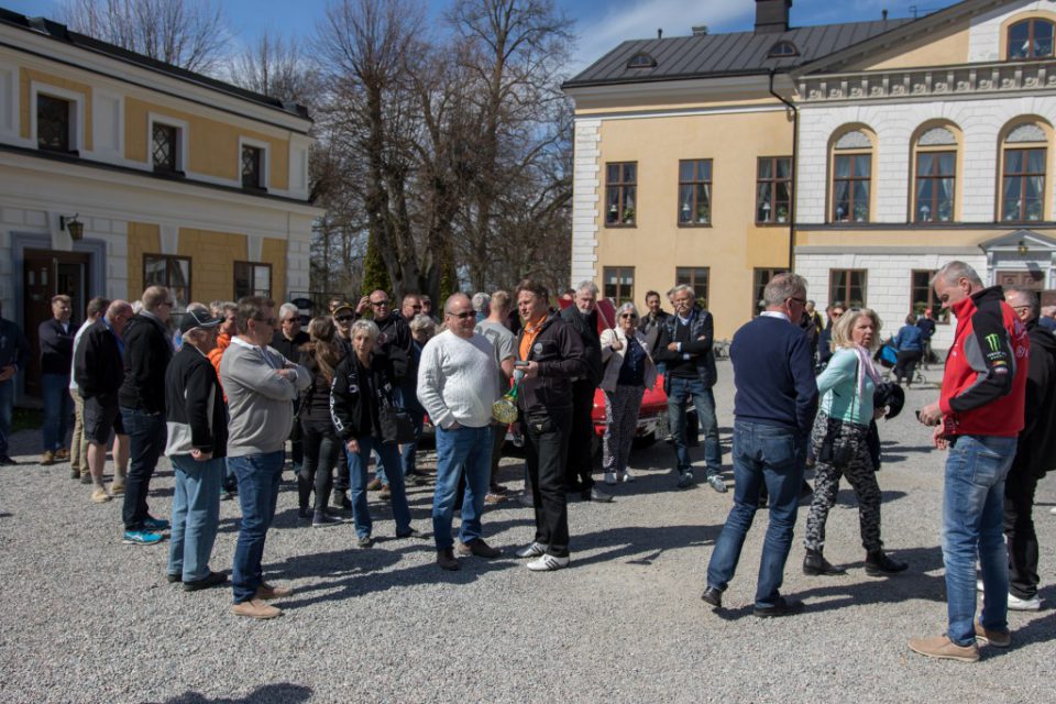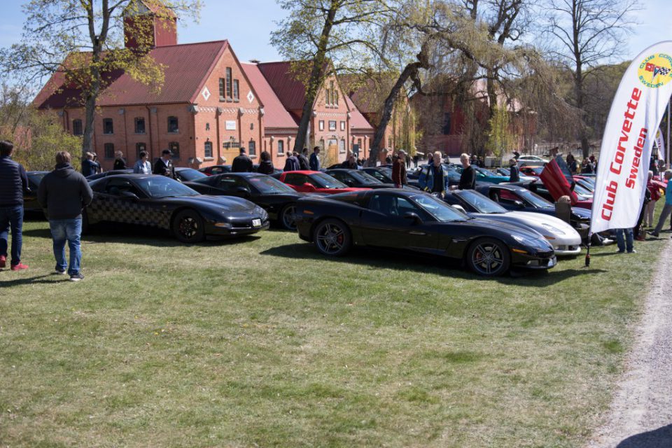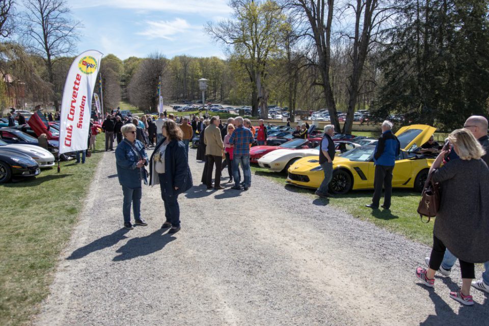 Även i år blev det en vårmönstring på Taxinge slott. Vi har ju varit där några år nu. Eftersom vi är nöjda kommer vi tillbaka. En del bilar hade samlats i Botkyrka för gemensam färd ner till Taxinge. Det går inte att hålla ihop alla bilar så det blev 10 – 15 bilar i varje grupp. Ju närmare Taxinge vi kommer desto fler bilar sluter upp. När vi kommer in på den sista biten så har väghållaren lagt nytt oljegrus på vägen så det blir krypkörning fram till träffen. Väl framme får vi lunchbiljetter och en liten present av Örnen. Till slut har vi parkerat, denna gång inte efter generation utan blandat. Vädret är toppen, det tidigare under veckan kyliga vädret är bortblåst. Solen lyser, massor av folk, alla är glada.