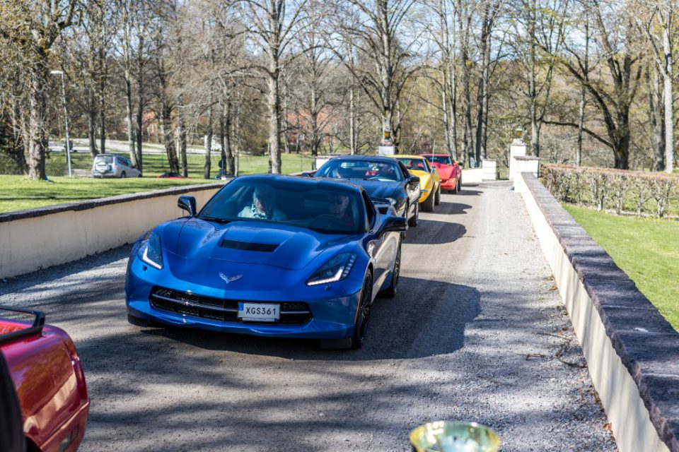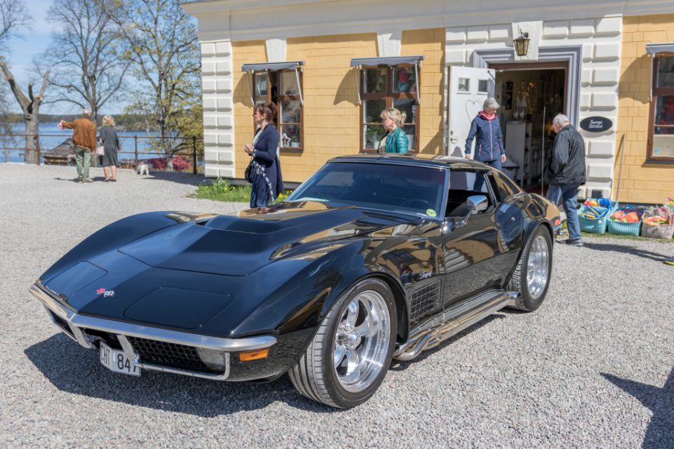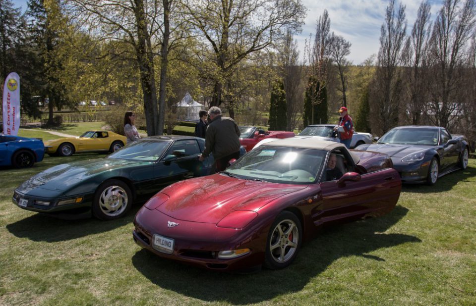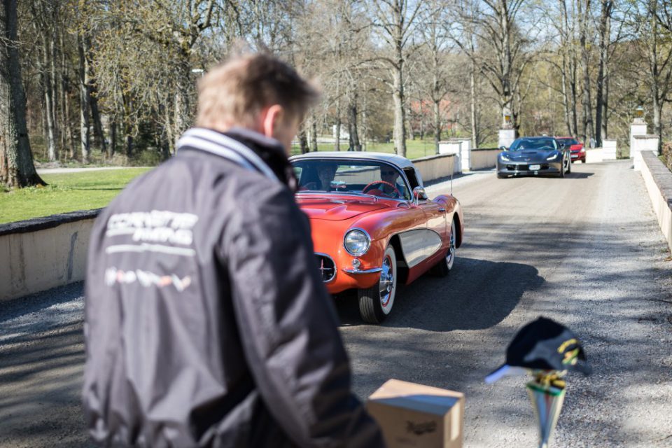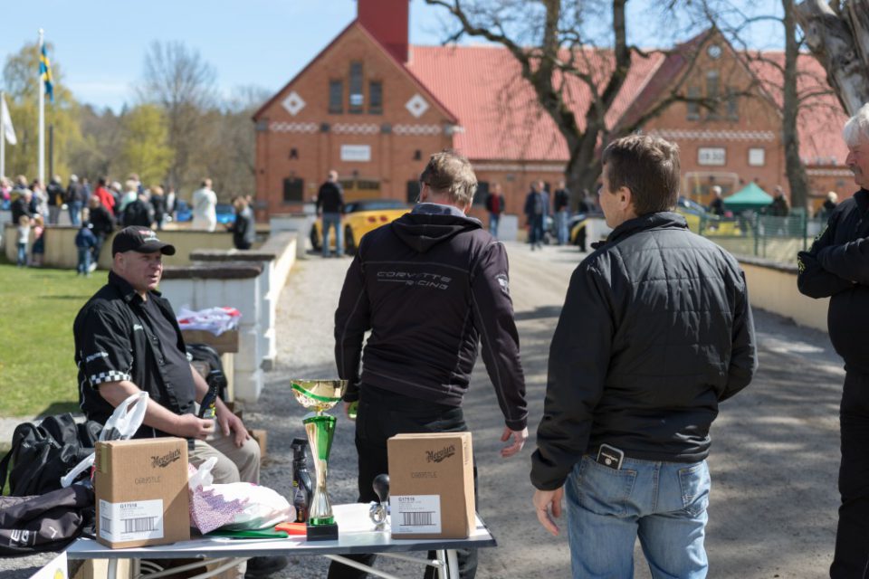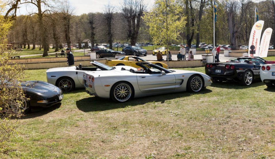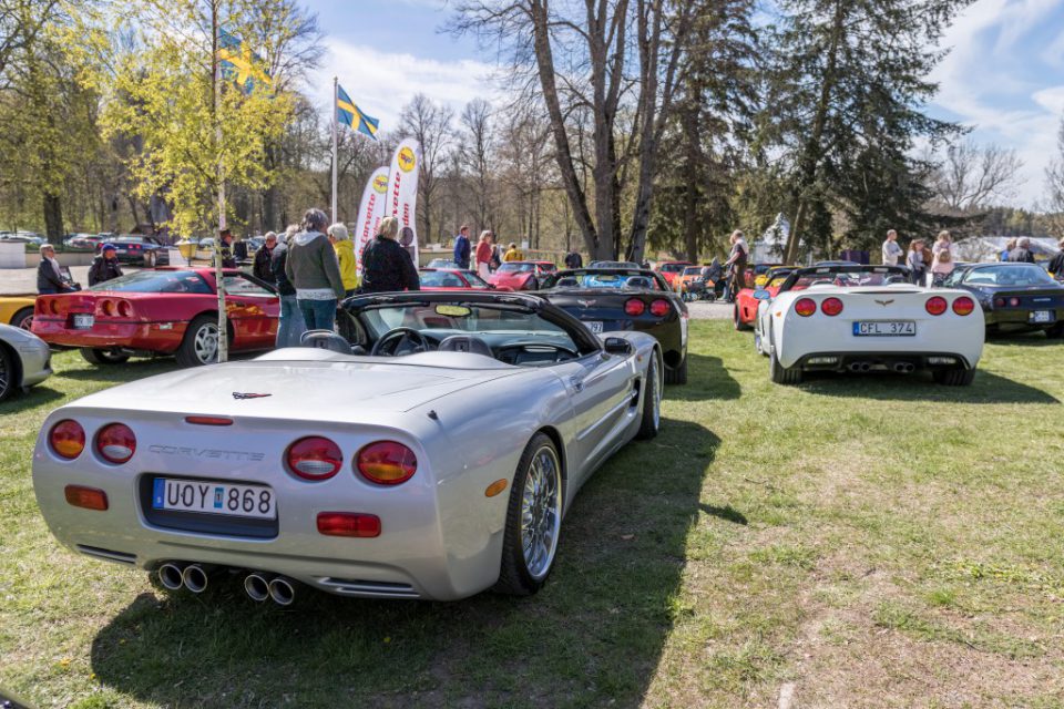 Även i år blev det en vårmönstring på Taxinge slott. Vi har ju varit där några år nu. Eftersom vi är nöjda kommer vi tillbaka. En del bilar hade samlats i Botkyrka för gemensam färd ner till Taxinge. Det går inte att hålla ihop alla bilar så det blev 10 – 15 bilar i varje grupp. Ju närmare Taxinge vi kommer desto fler bilar sluter upp. När vi kommer in på den sista biten så har väghållaren lagt nytt oljegrus på vägen så det blir krypkörning fram till träffen. Väl framme får vi lunchbiljetter och en liten present av Örnen. Till slut har vi parkerat, denna gång inte efter generation utan blandat. Vädret är toppen, det tidigare under veckan kyliga vädret är bortblåst. Solen lyser, massor av folk, alla är glada.