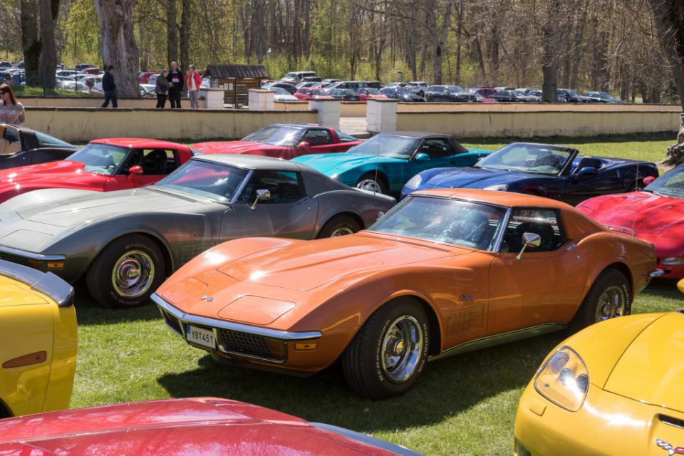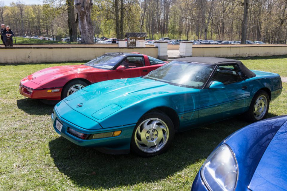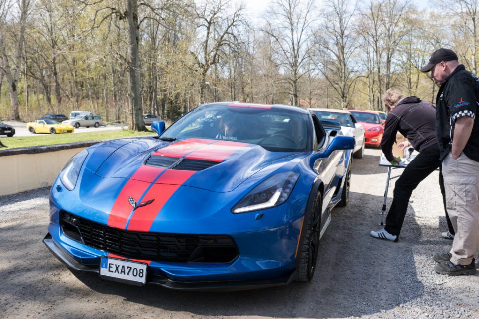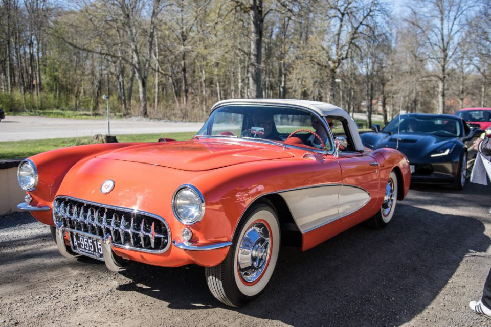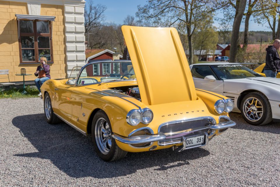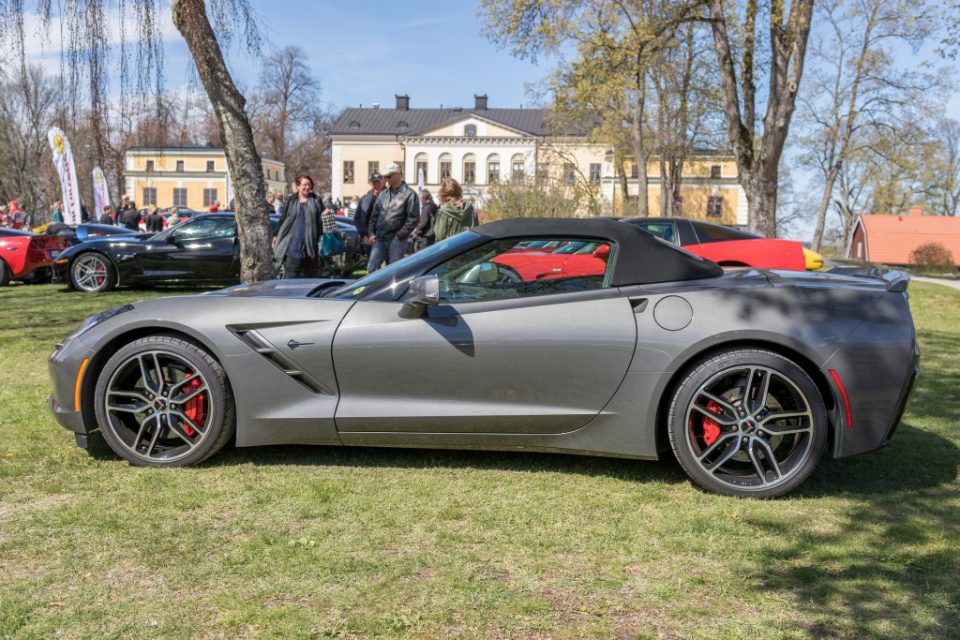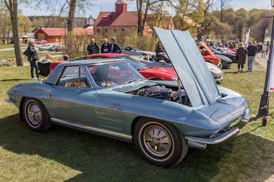 Även i år blev det en vårmönstring på Taxinge slott. Vi har ju varit där några år nu. Eftersom vi är nöjda kommer vi tillbaka. En del bilar hade samlats i Botkyrka för gemensam färd ner till Taxinge. Det går inte att hålla ihop alla bilar så det blev 10 – 15 bilar i varje grupp. Ju närmare Taxinge vi kommer desto fler bilar sluter upp. När vi kommer in på den sista biten så har väghållaren lagt nytt oljegrus på vägen så det blir krypkörning fram till träffen. Väl framme får vi lunchbiljetter och en liten present av Örnen. Till slut har vi parkerat, denna gång inte efter generation utan blandat. Vädret är toppen, det tidigare under veckan kyliga vädret är bortblåst. Solen lyser, massor av folk, alla är glada.