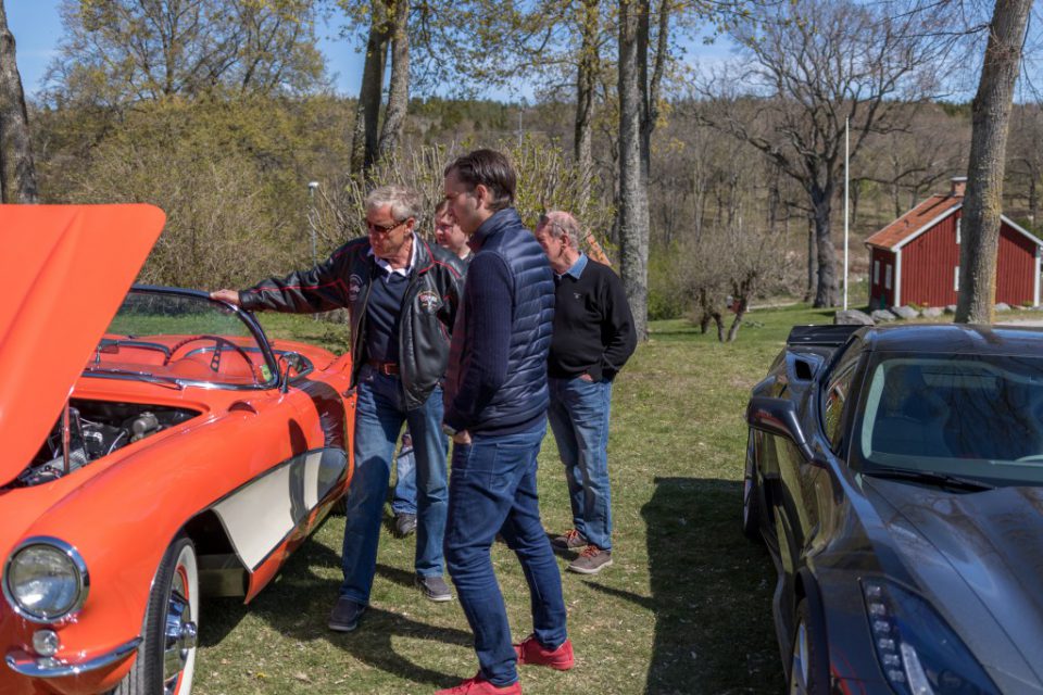 Sen går vi ut i solen igen för att lista ut vem som har den snyggaste bilen. Vi som är där ska nämligen ”rösta med fötterna”, dvs den bil som har flest personer omkring sig vinner.