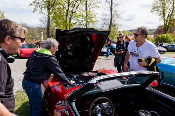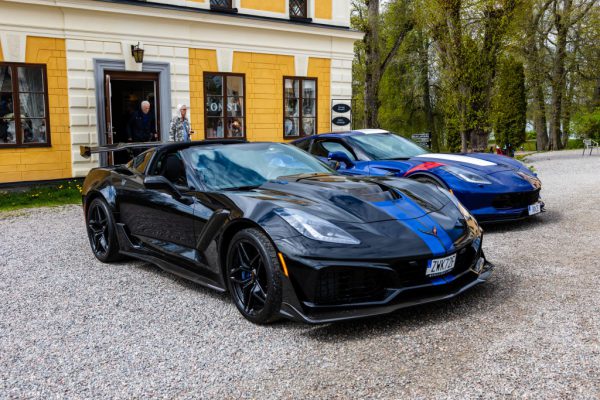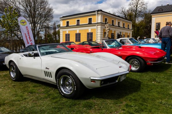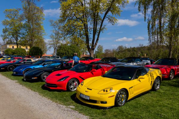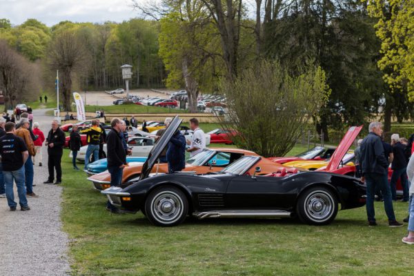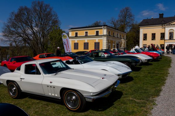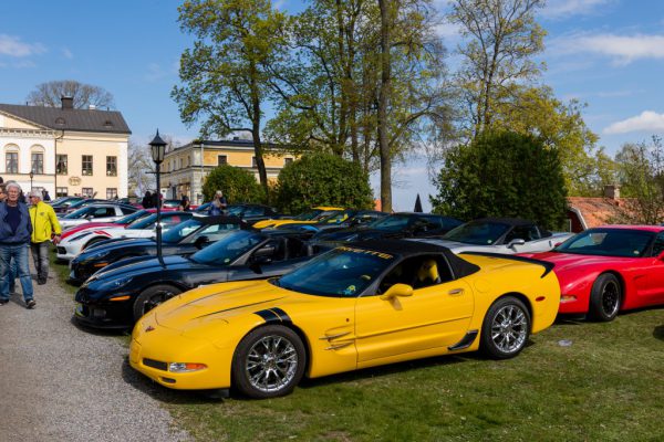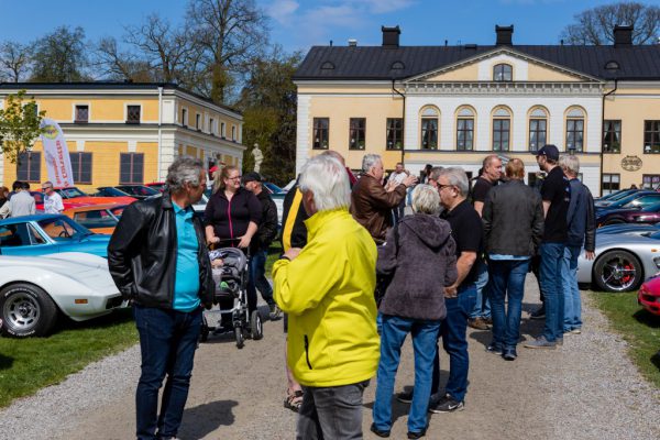 Så var det dags igen. Årets första stora träff i Mälardalen. Vädret i April hade ju blivit riktigt bra men maj inleddes med kallt och ruggigt så jag kollade väderrapporten varje dag under veckan. På lördagen blev det fantastiskt väder, sol, några moln samt ljumma vindar. Det blev nästan fullt med Corvetter på gräsmattorna utanför slottet, totalt nästan 150 st. Mingel med gamla och nya vänner före lunchen och mer mingel efter lunchen. Lunchen var som vanligt mycket god och vällagad, kalvhögrev med potatismos och lite annat. Köttet var mört och det nästan smälte i mun. Sen en liten kaka, eller två, till kaffet. All heder åt personalen. När vi gick ut i solen igen var det efter att tag dags att kora finaste bil. Flest personer ställde sig vid Janne Rundströms blå 67:a. I perfekt originalskick, som ny. Den tillhör den unika skaran smallblock 67:or som fick en bigblock huv direkt från fabrik. Detta eftersom någon hade schabblat vid tillverkning av smallblockhuvar i februari 1967. Inte kunde man stoppa produktionen p.g.a. en sån detalj.