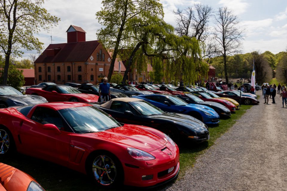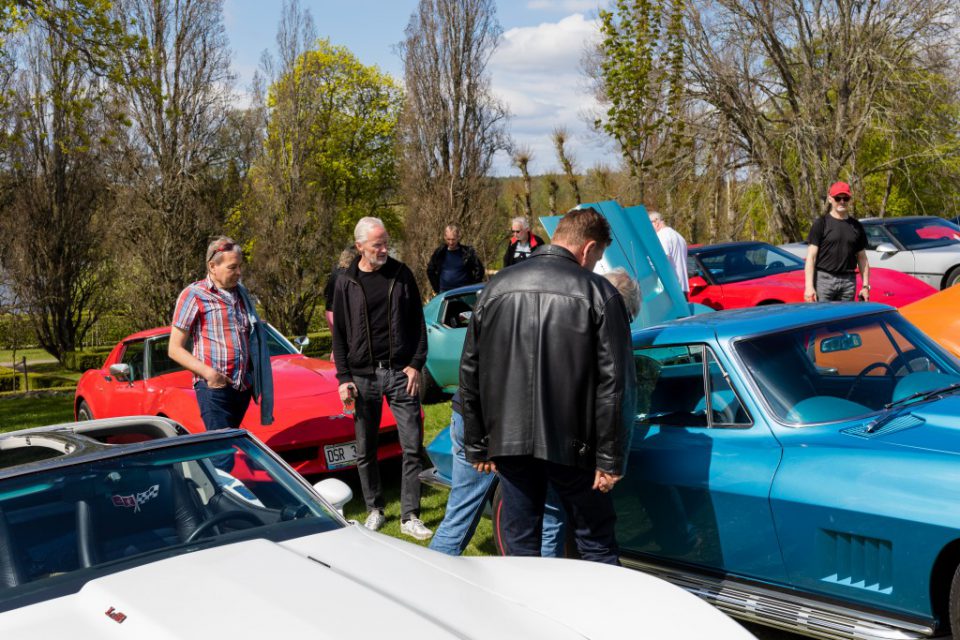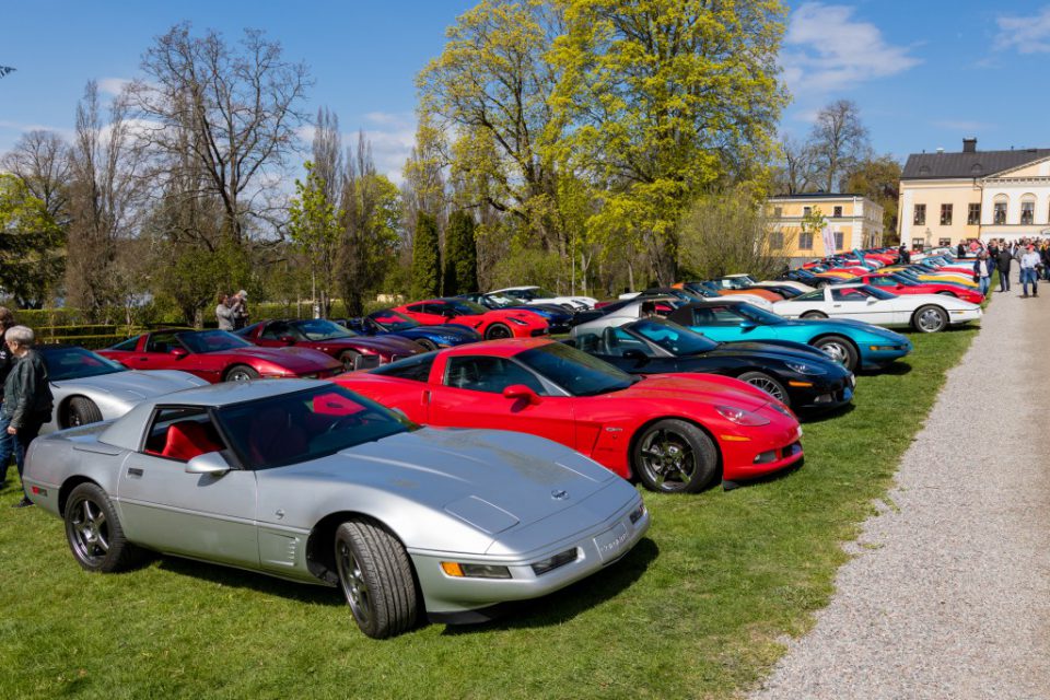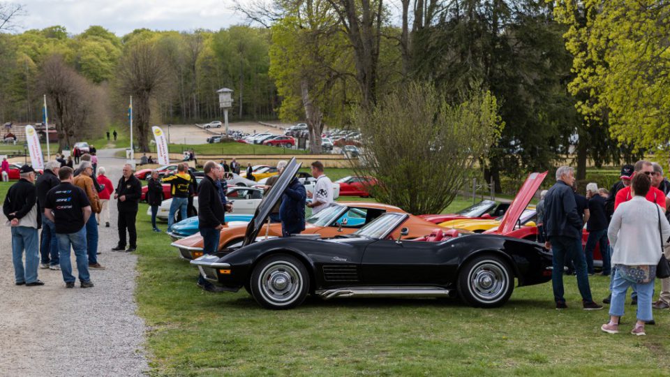 Så var det dags igen. Årets första stora träff i Mälardalen. Vädret i April hade ju blivit riktigt bra men maj inleddes med kallt och ruggigt så jag kollade väderrapporten varje dag under veckan. På lördagen blev det fantastiskt väder, sol, några moln samt ljumma vindar. Det blev nästan fullt med Corvetter på gräsmattorna utanför slottet, totalt nästan 150 st. Mingel med gamla och nya vänner före lunchen och mer mingel efter lunchen. Lunchen var som vanligt mycket god och vällagad, kalvhögrev med potatismos och lite annat. Köttet var mört och det nästan smälte i mun. Sen en liten kaka, eller två, till kaffet. All heder åt personalen. När vi gick ut i solen igen var det efter att tag dags att kora finaste bil. Flest personer ställde sig vid Janne Rundströms blå 67:a. I perfekt originalskick, som ny. Den tillhör den unika skaran smallblock 67:or som fick en bigblock huv direkt från fabrik. Detta eftersom någon hade schabblat vid tillverkning av smallblockhuvar i februari 1967. Inte kunde man stoppa produktionen p.g.a. en sån detalj.