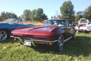 Första gången i Hågelbyparken – hur skulle det gå efter massor av år på Barkaby flygfält ? Jodå, snart ringlade köerna långa ute på tillfartsvägen och i det fina vädret kämpade arrangören lite ovant med att lotsa in alla typer av veteranbilar, hot-rods, lastbilar mm till olika platser. Corvetterna fick en bra plats med utsikt över alla tillströmmande bilar och lagom långt gångavstånd till insläppet till Hågelbygården och alla försäljningsstånd med mer-eller mindre nödvändiga prylar.