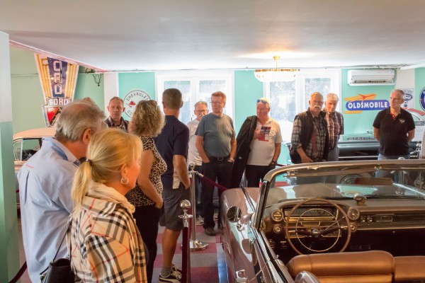 Framme vid museet möttes vi av Leif-Ivan Karlsson (skaparen av samlingen) när alla bilar var parkerade framför museet delades vi upp i två grupper för guidad tur av bilsamlingen. Efter guidningen var det Kaffe med fikabröd och fri vandring i museets tre plan. Det finns ett 100-tal bilar där de flesta är till salu, bilarna är från 50 och 60-talet. Förutom bilarna finns det mycket smått och gott att se.