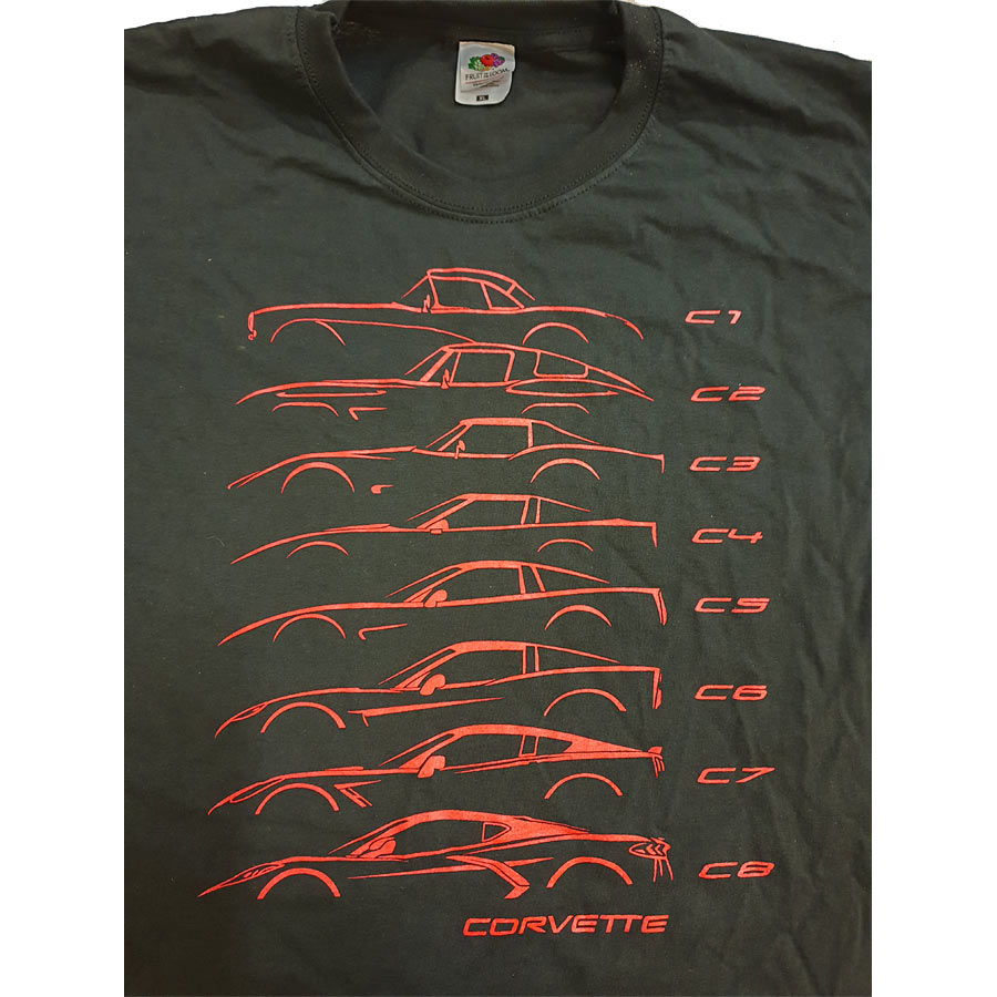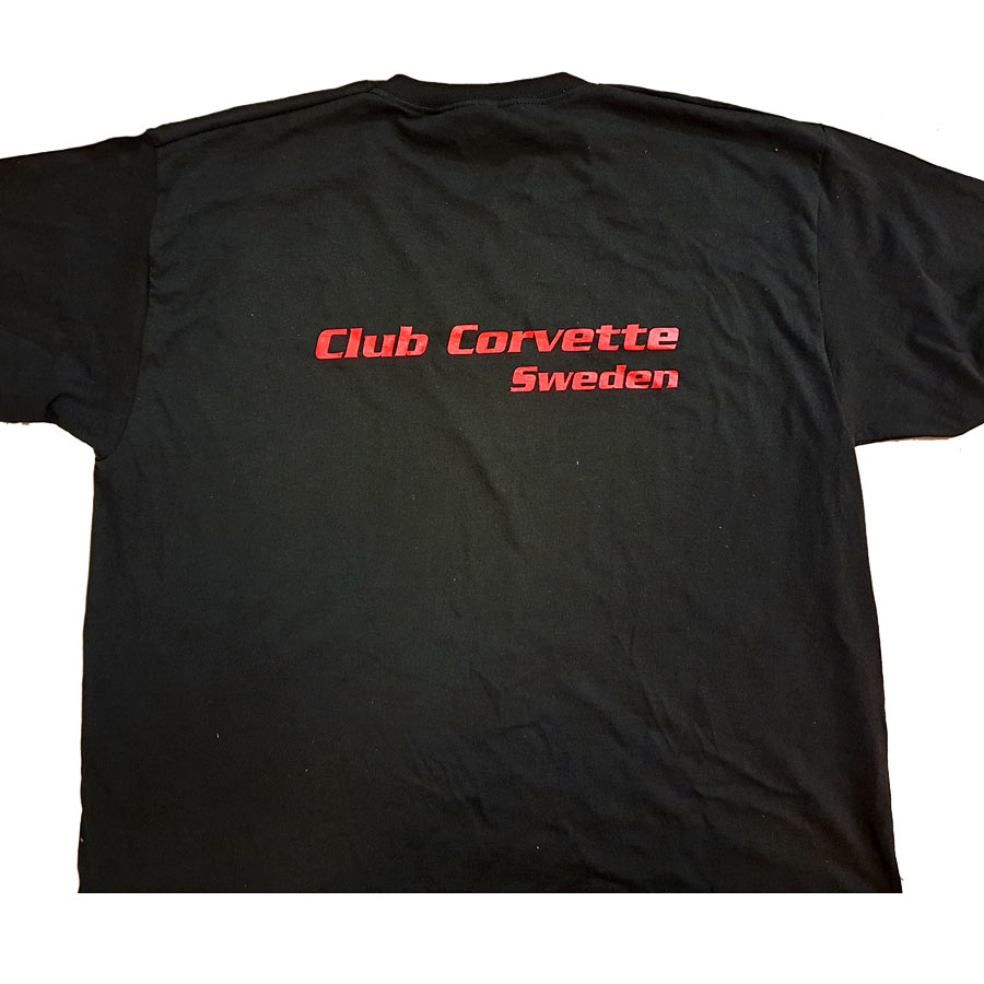 Svart t-shirts med rött tryck Ryggtryck – Club Corvette Sweden i rött Material: 100% bomull