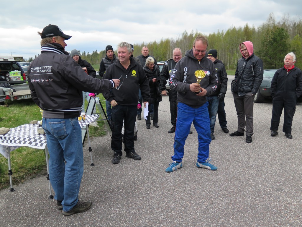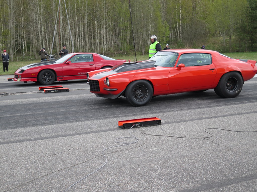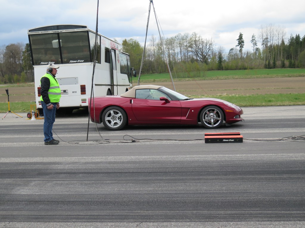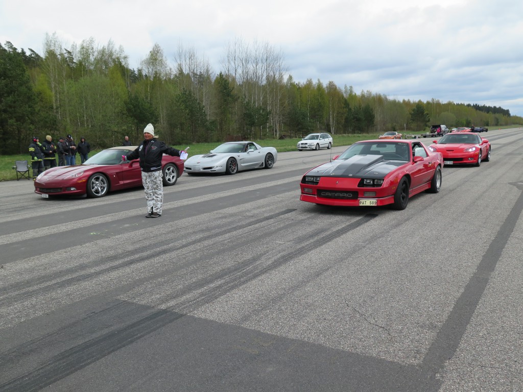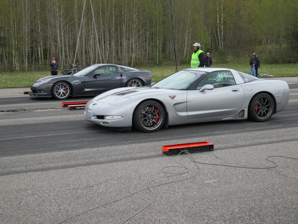 En kort sammanfattning av årets första racearrangemang blir: kallt. En kylig vår gjorde säkert att inte lika många som vanligt anmälde sig i förväg utan väntade in i det sista på en värmebölja. Den uteblev och det blåste riktigt kallt hela dagen. Enligt ett par vädersajter skulle det också regna ett par timmar, men det var dessbättre fel, vi körde hela dagen i uppehållsväder. Eftersom det var så pass få som körde dragracing var det redan före kl. 11 tomt på startplattan. Allt hade funkat perfekt och även en Corvette behöver vila mellan vändorna.